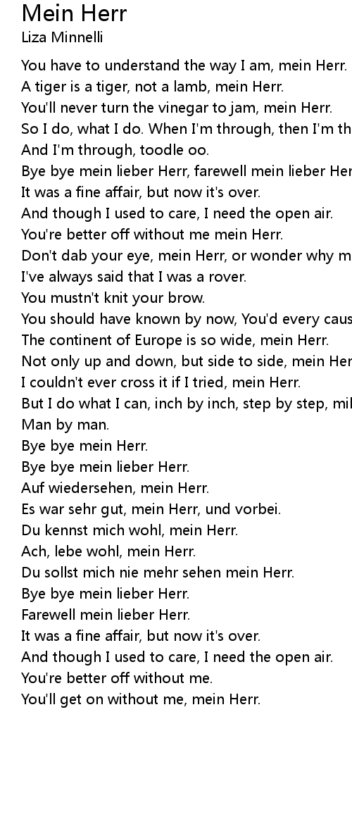 Don't dab your eye, mein Herr, or wonder why mein Herr. |