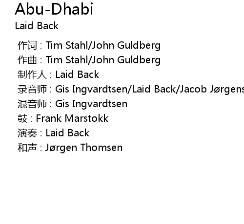 | [00:00.000] | 录音师 : Gis Ingvardtsen/Laid Back/Jacob Jørgensen |