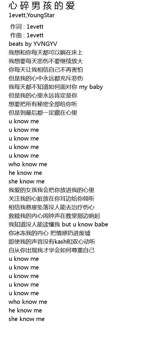 | [02:01.184] | 我知道没人能读懂我 but u know babe |