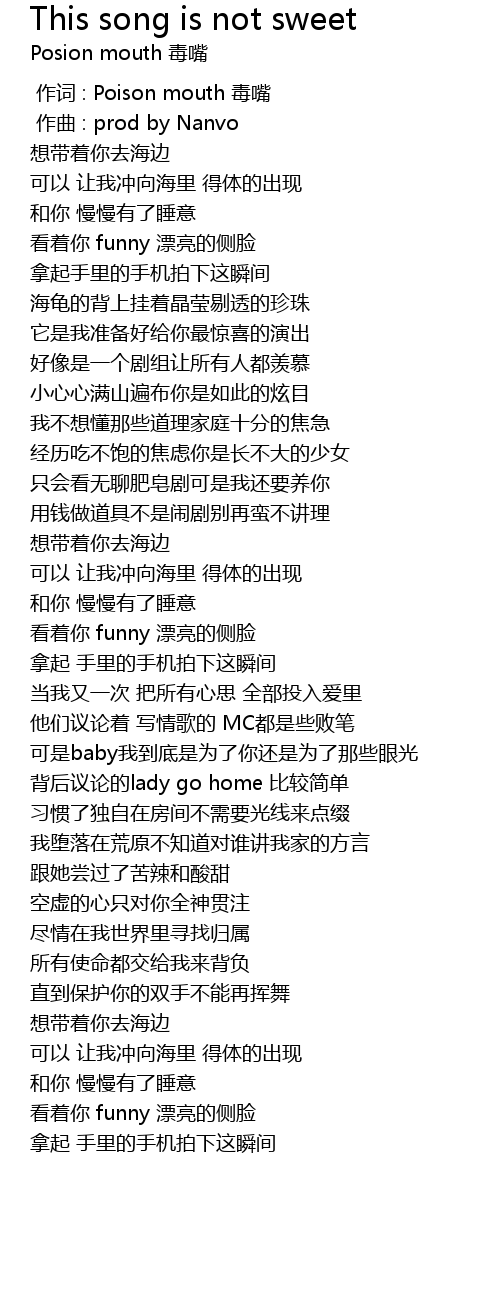 | [00:00.000] | 作词 : Poison mouth 毒嘴 |