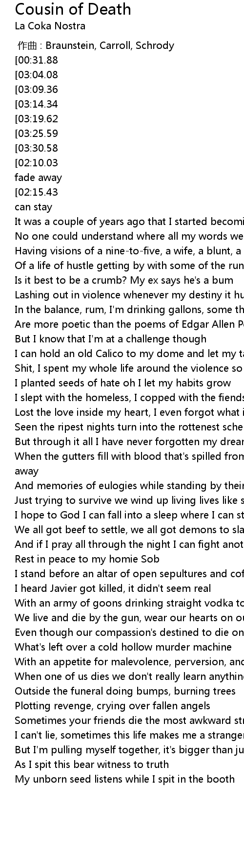 | [01:22.48] | Shit, I spent my whole life around the violence so |