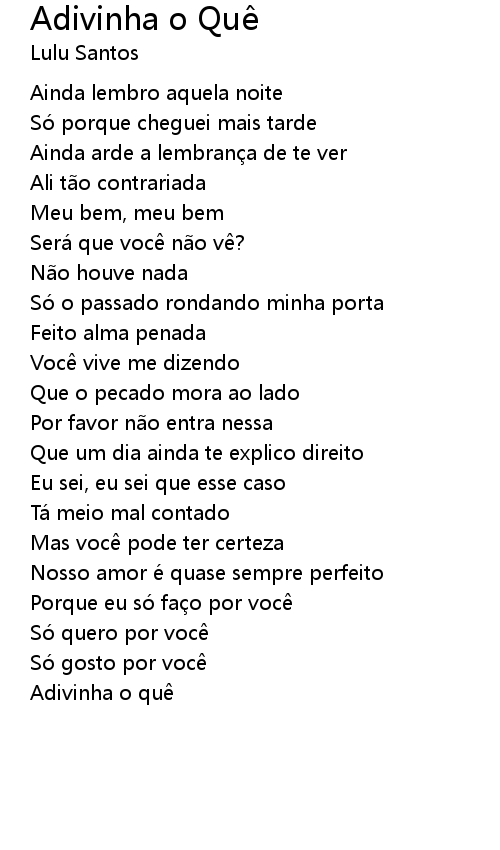 | Song | Adivinha o Quê |