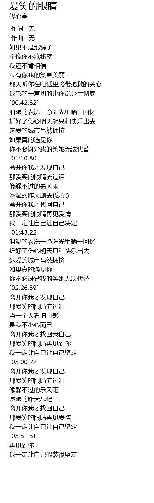 | [01:29.95] | 那爱笑的眼睛再见爱情 |