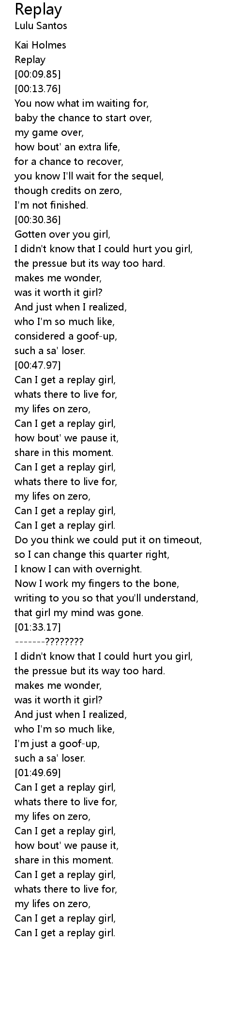 Can I get a replay girl, |