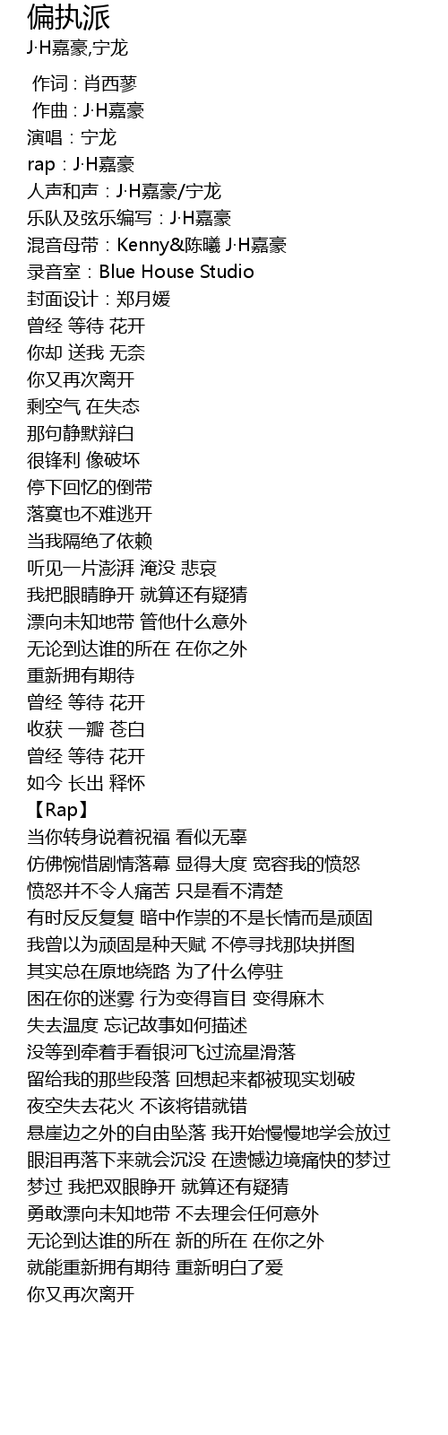 | [00:01.302] | 混音母带:Kenny&陈曦 J·H嘉豪 |
