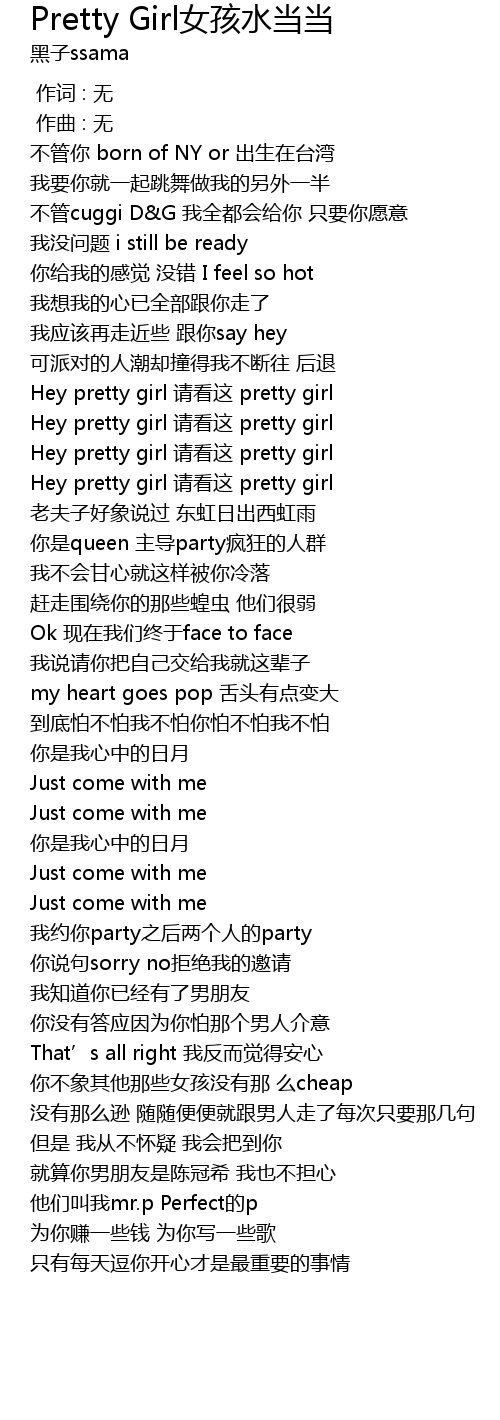| [00:50.934] | Hey pretty girl qǐng kàn zhè pretty girl |
