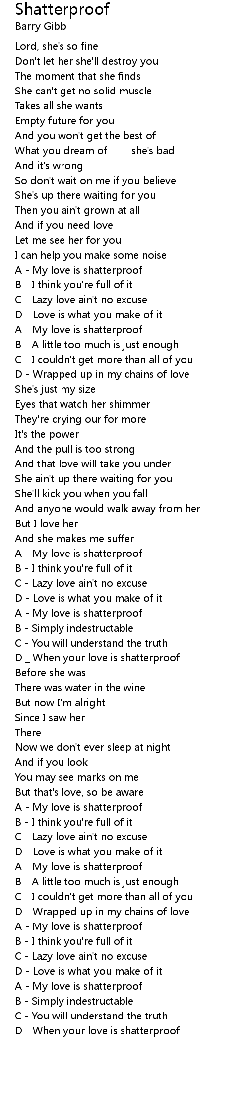 | D - When your love is shatterproof |