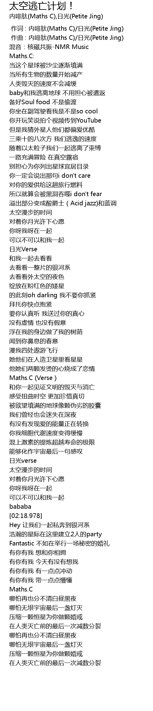 | [00:01.000] | zuò qǔ : nèi fēi tài Maths C rì guāng Petite Jing |