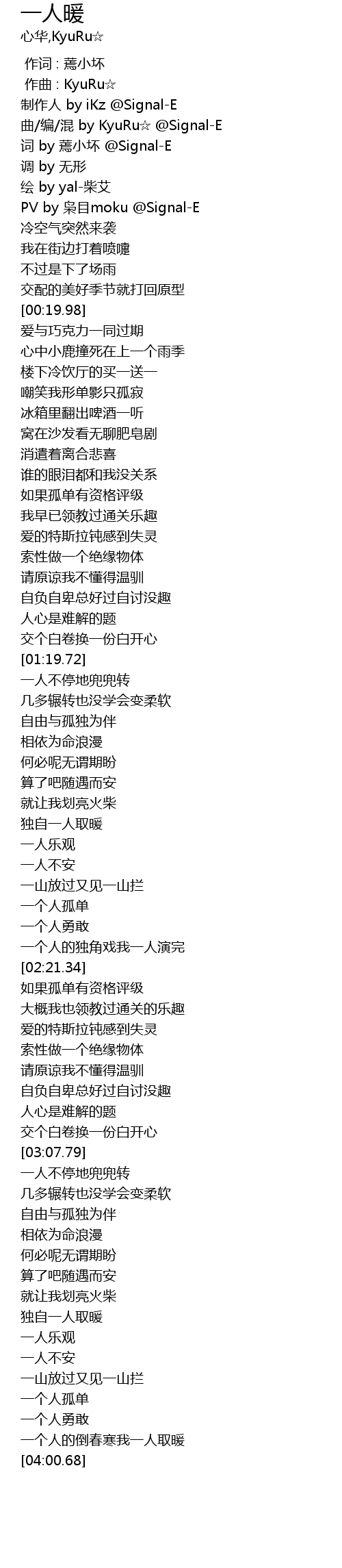 | [01:51.71] | dú zì yī rén qǔ nuǎn |