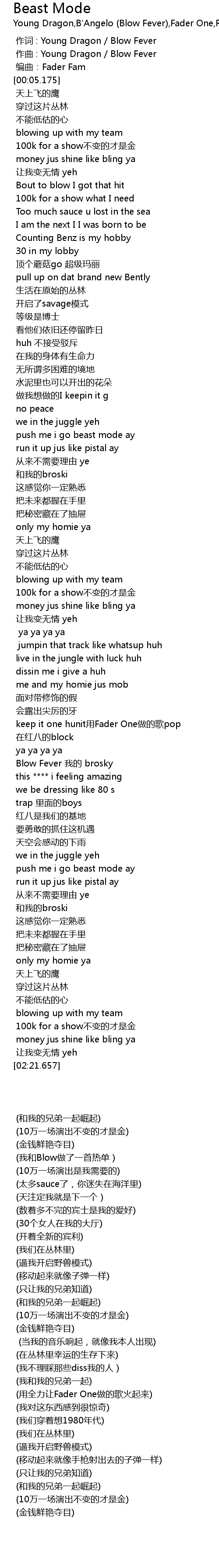 | [00:01.000] | zuò qǔ : Young Dragon Blow Fever |