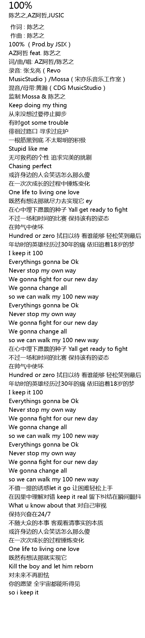 | [01:51.437] | Hundred or zero 拭目以待 看谁能够 轻松笑到最后 |