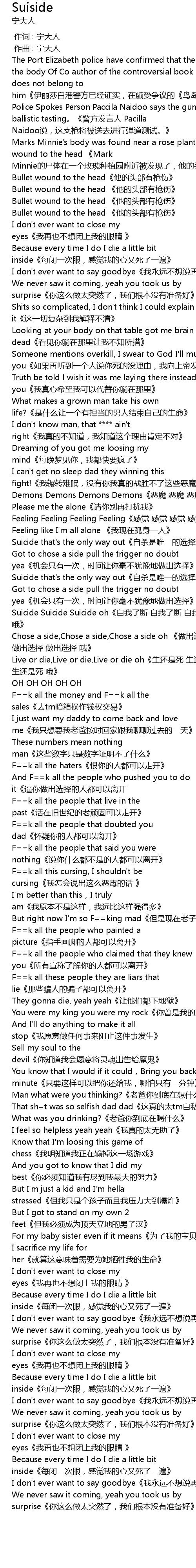| [01:22.166] | Suicide Suicide Suicide oh《自我了断 自我了断 自我了断 哦》 |