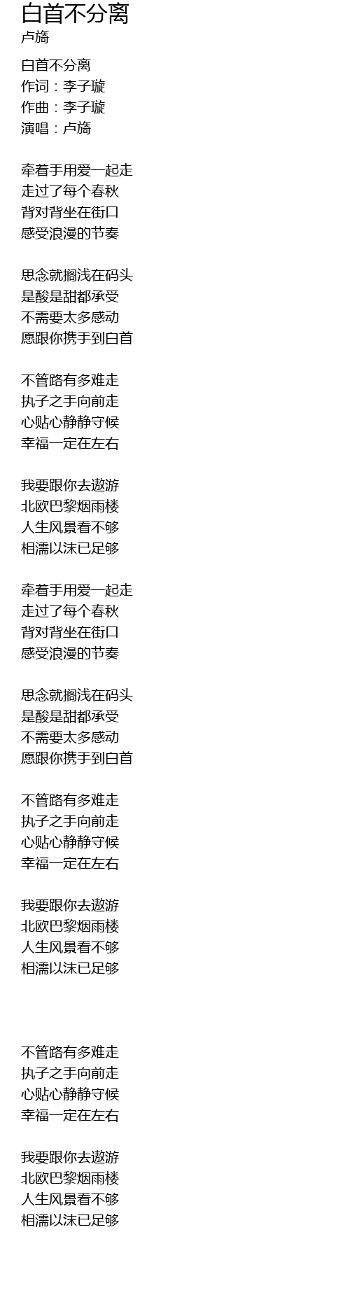 | yuàn gēn nǐ xié shǒu dào bái shǒu | |