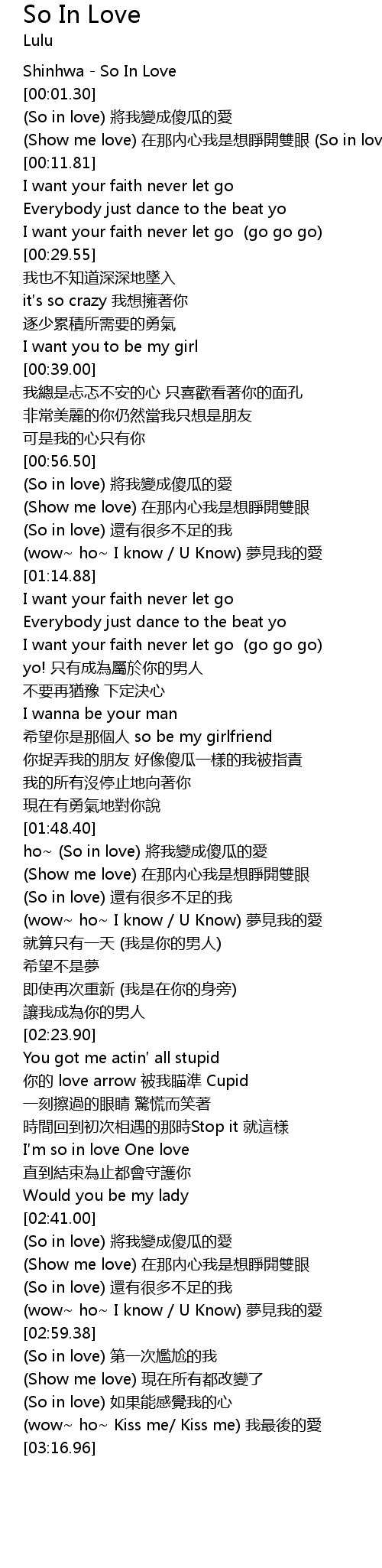 | [00:01.00] | Shinhwa So In Love |