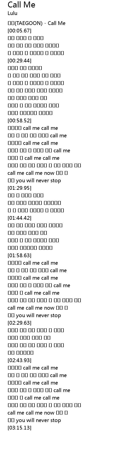 | [02:59.35] | call me call me |