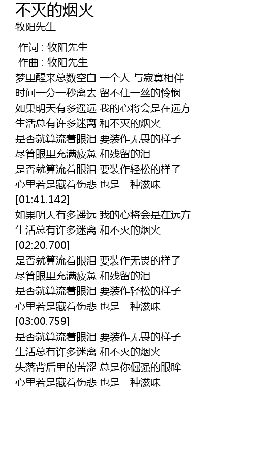 | [03:10.524] | shēng huó zǒng yǒu xǔ duō mí lí hé bù miè de yān huǒ |