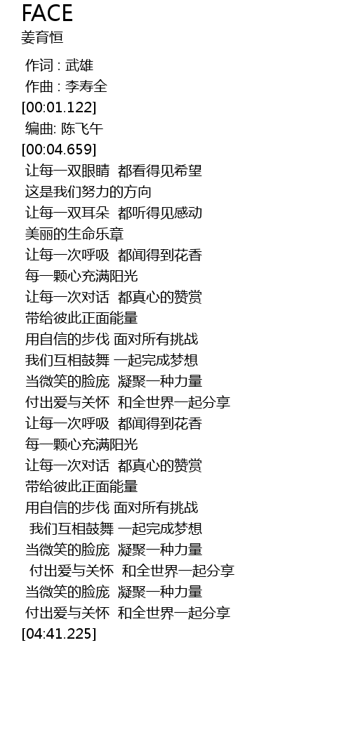 | [03:53.092] | 当微笑的脸庞 凝聚一种力量 |