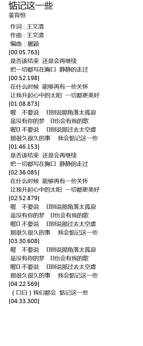 | [04:12.453] | 那很久很久的事 我会惦记这一些 |