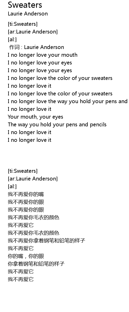 | [00:47.49] | I no longer love the color of your sweaters |