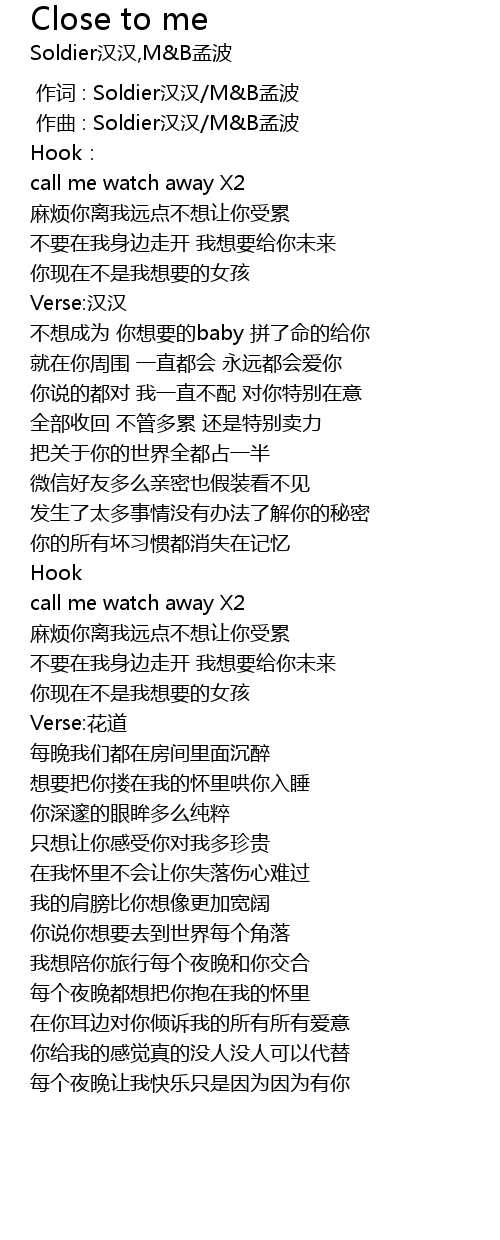 | [00:00.000] | 作词 : Soldier汉汉/M&B孟波 |