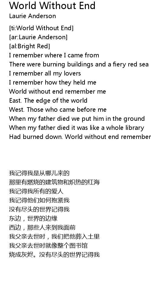 Had burned down. World without end remember me |