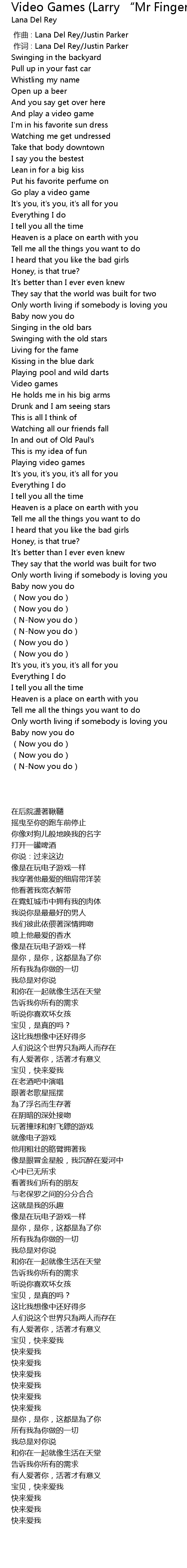 | [00:00.00] | 作曲 : Lana Del Rey/Justin Parker |