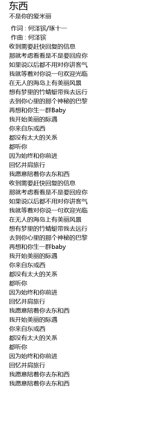 | [00:51.830] | 我愿意陪着你去东和西 |