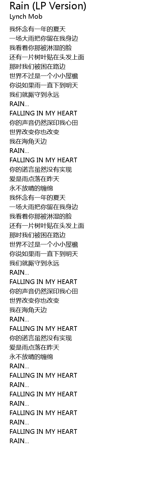 | [00:20] | wǒ huái niàn yǒu yī nián de xià tiān |