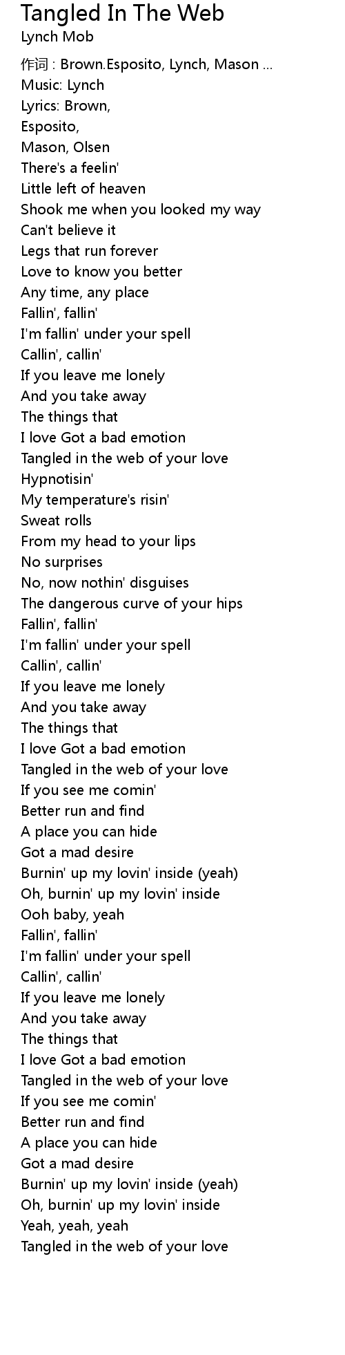 | 作词 : Brown.Esposito, Lynch, Mason ... | |