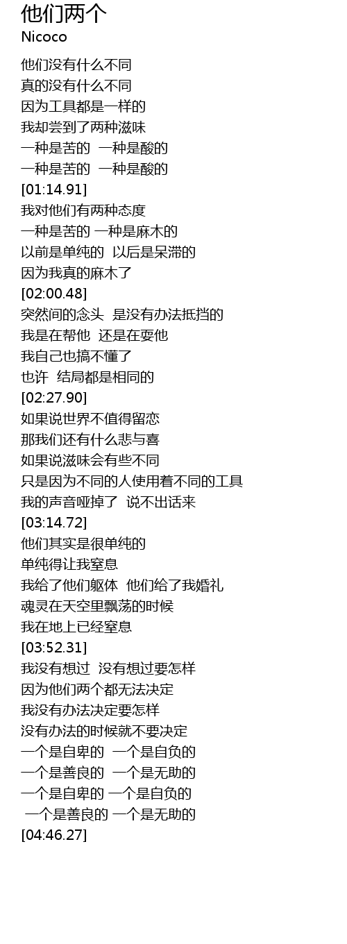 | [04:43.11] | 一个是善良的 一个是无助的 |