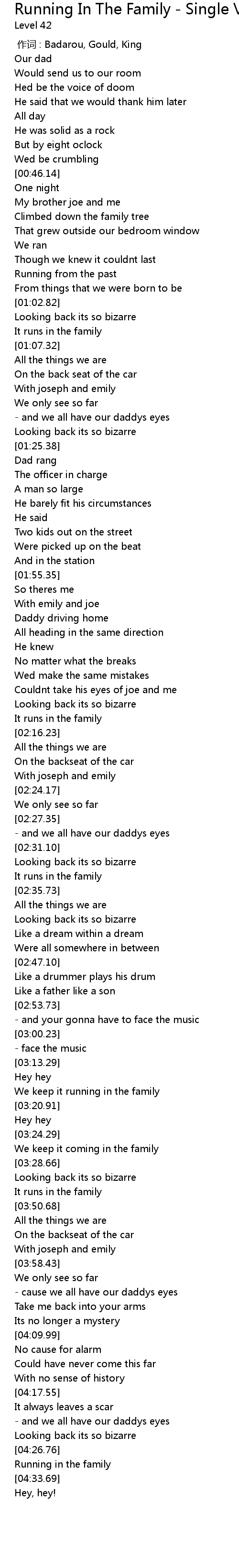 | [04:30.44] | Running in the family |