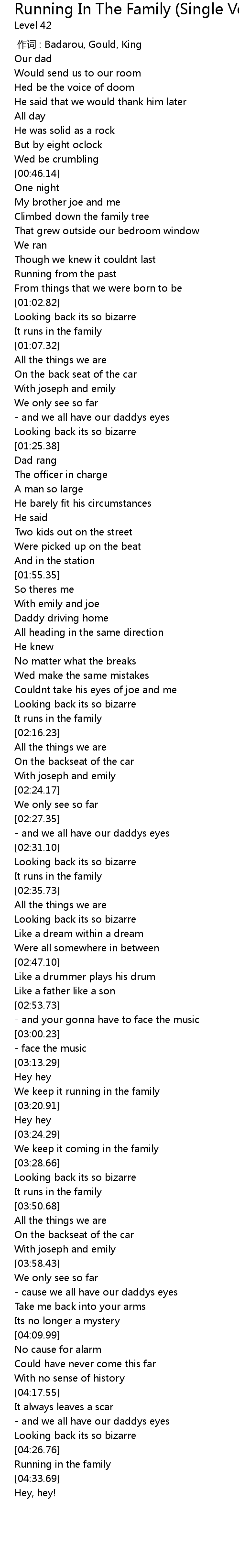| [04:30.44] | Running in the family |