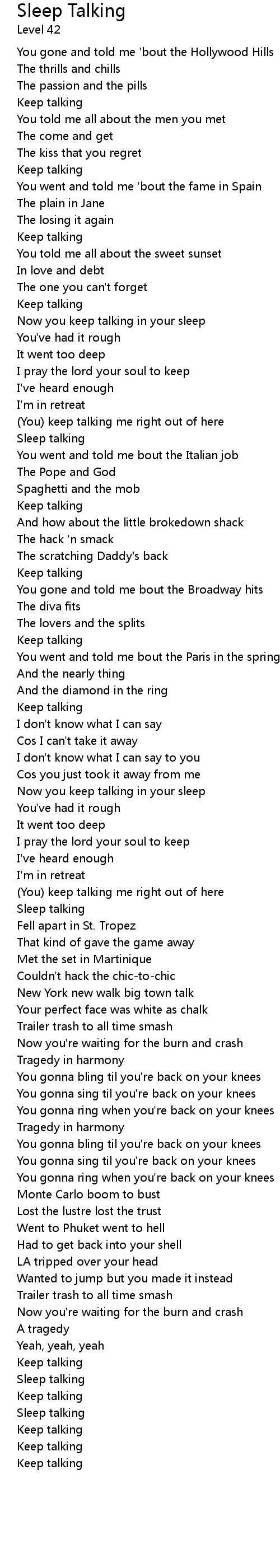 Now you keep talking in your sleep |