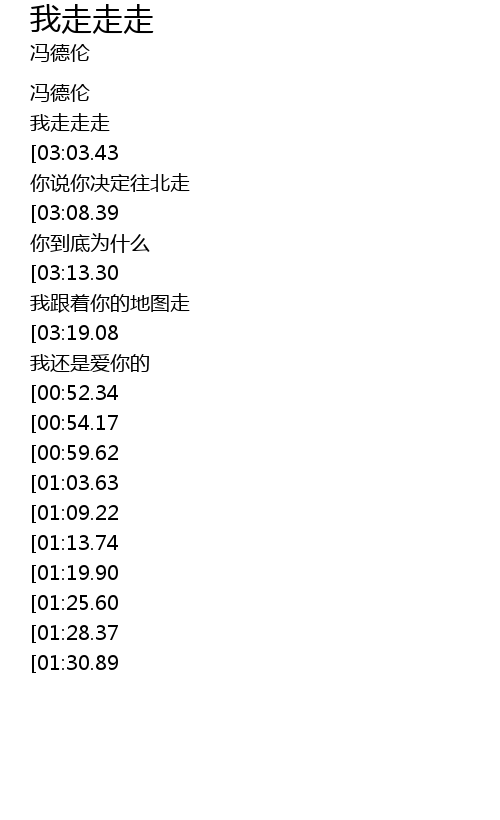 | [02:53.39][01:25.60] | 我走走走我不停走 |