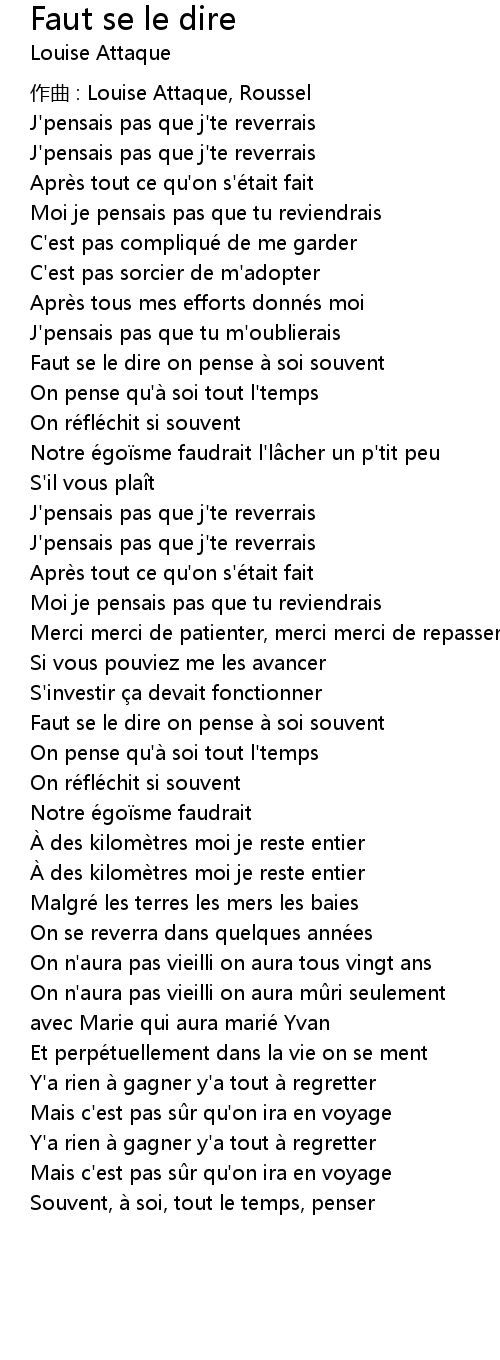 | Notre égoïsme faudrait l'lâcher un p'tit peu | |