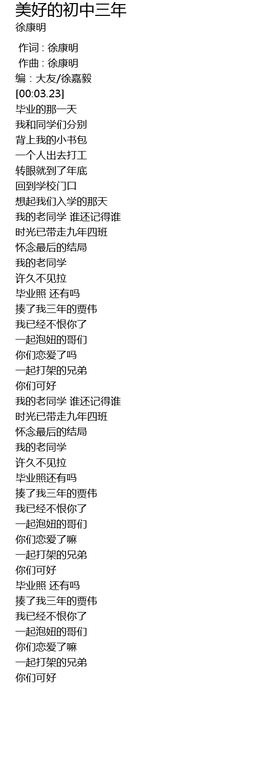 | [00:55.77] | 我的老同学 谁还记得谁 |