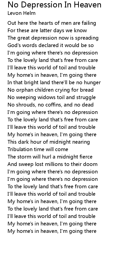 I'm going where there's no depression |