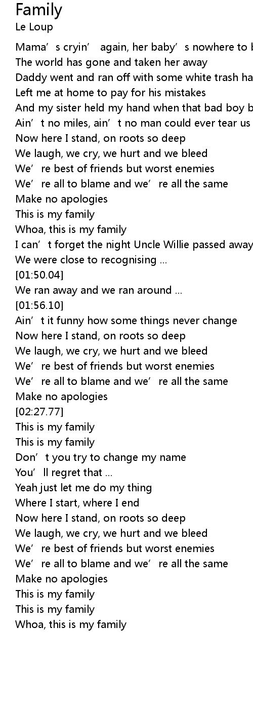 | [02:43.43] | This is my family |