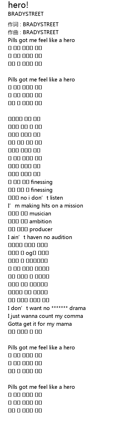 | Pills got me feel like a hero | |