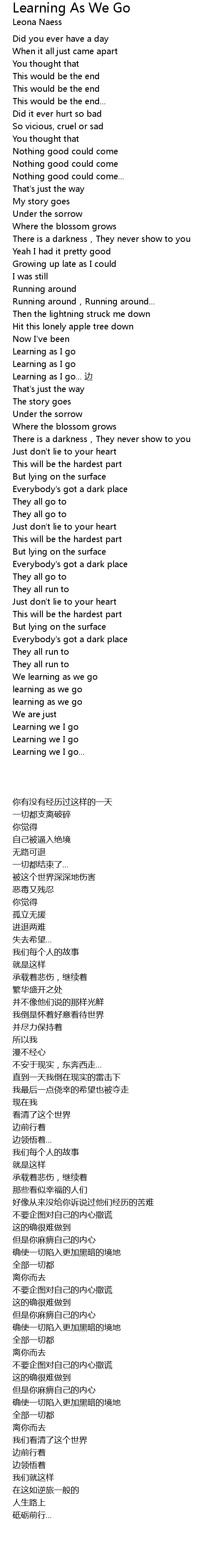 | [03:53.40] | Learning we I go |