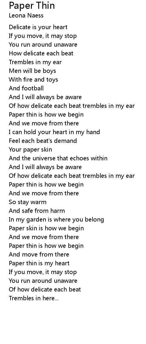 Paper thin is my heart |