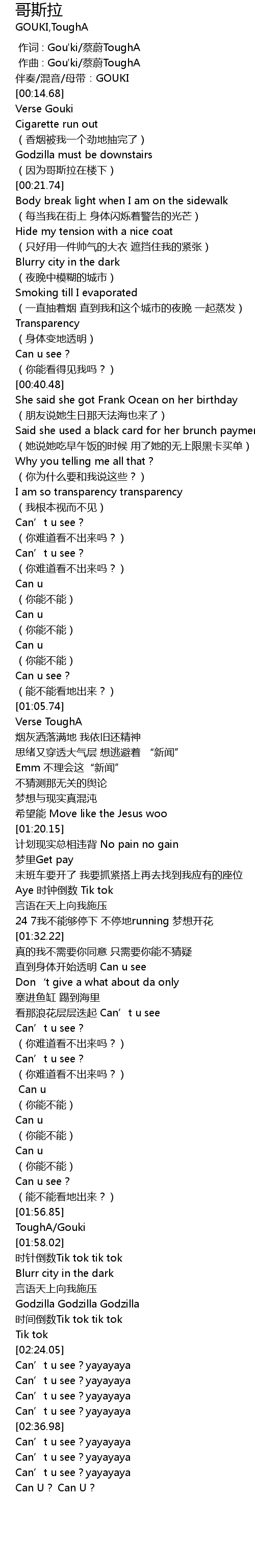 | [02:10.10] | Godzilla Godzilla Godzilla |