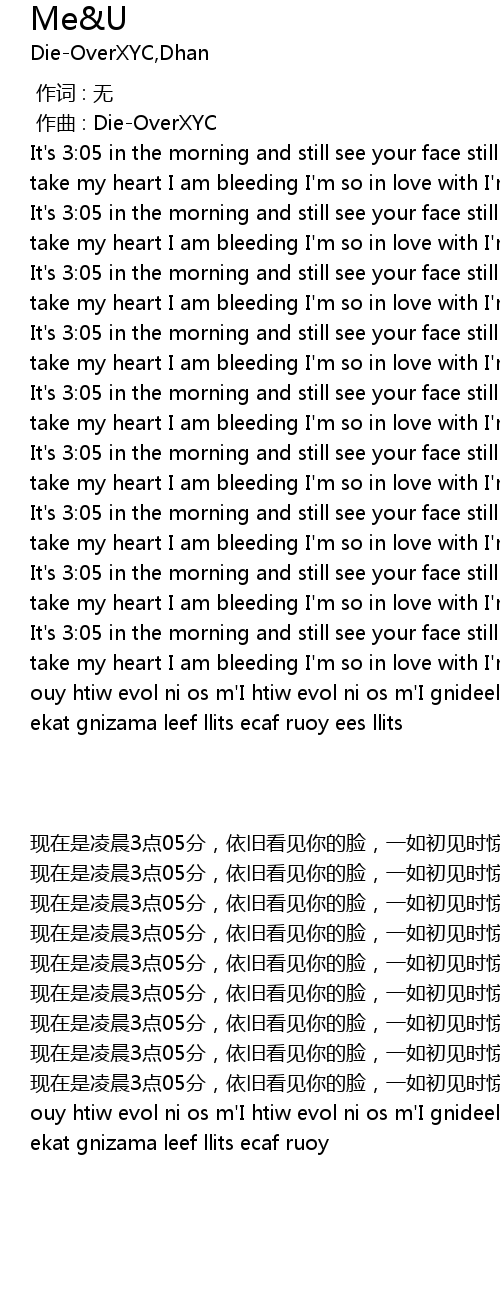 | [01:59.000] | It's 3:05 in the morning and still see your face still feel amazing take my heart I am bleeding I'm so in love with I'm so in love with you |