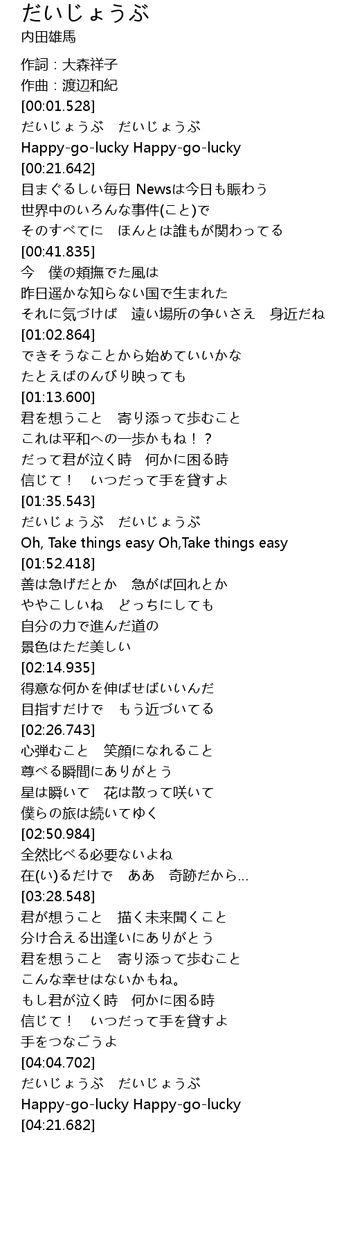 | [00:05.055] | だいじょうぶ だいじょうぶ |