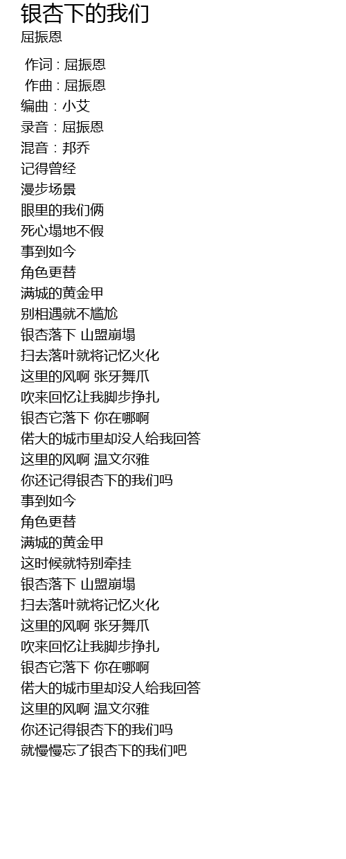 | [01:44.291] | 银杏它落下 你在哪啊 |