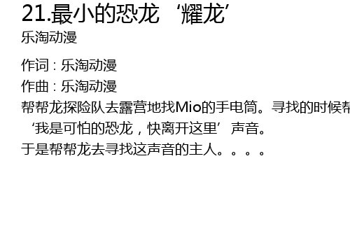 | Song | 21.最小的恐龙‘耀龙’ |