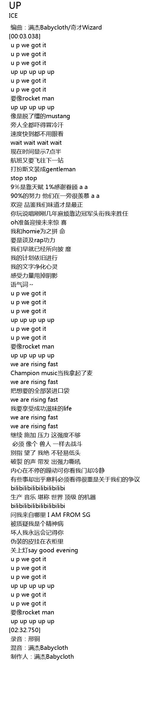 | [00:02.134] | biān qǔ: mǎn jié Babycloth qí cái Wizard |