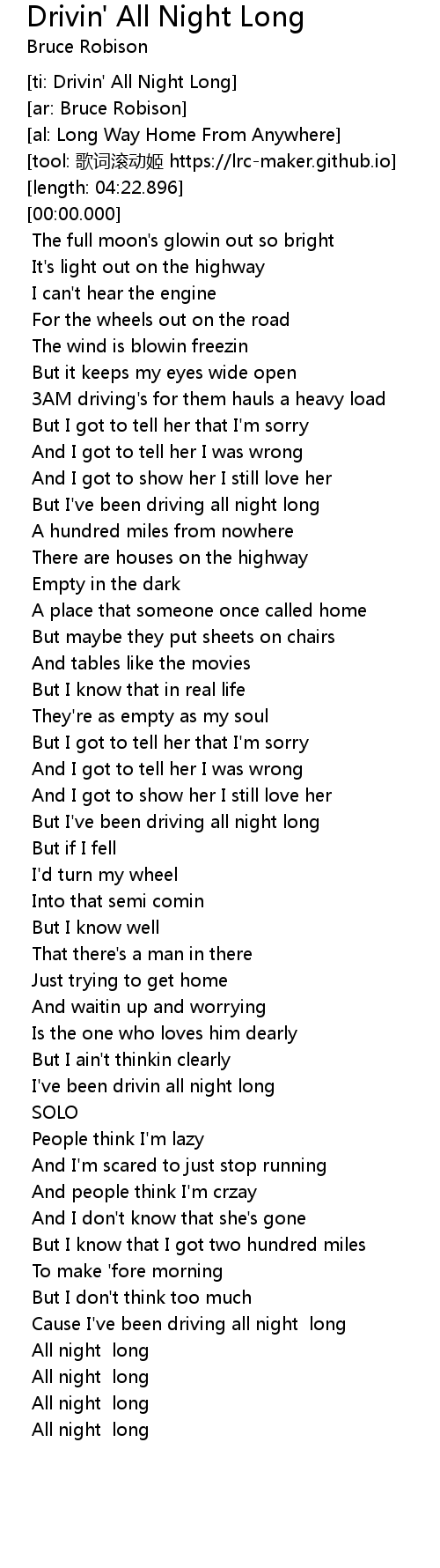 | [00:31.207] | 3AM driving's for them hauls a heavy load |