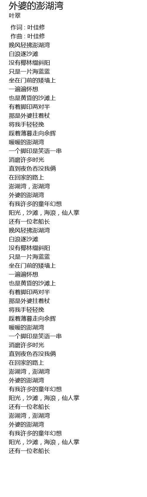 | [00:55.703] | 澎湖湾,澎湖湾 |