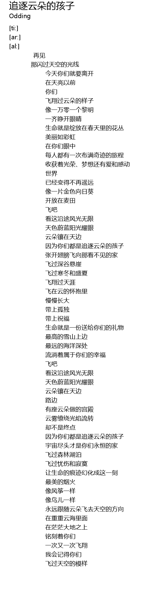 | [03:10.11] | 因为你们都是追逐云朵的孩子 |